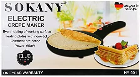 ბრენდი: SOKANY მოდელი: HY-901 სიმძლავრე: 650 W ტიპი: ელექტრო (სადენით) ბლინის მაქსიმალური რაოდენობა: 1 ჩართვა-გამორთვის ღილაკი ჯამის მასალა: პლასტმასი დიამეტრი: 22 სმ