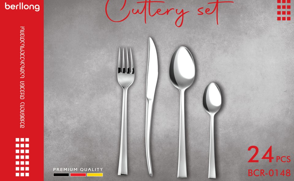 6 ც ჩანგალი, 6 ც დანა,6 ც სადილის კოვზი,6 ც ჩაის კოვზი