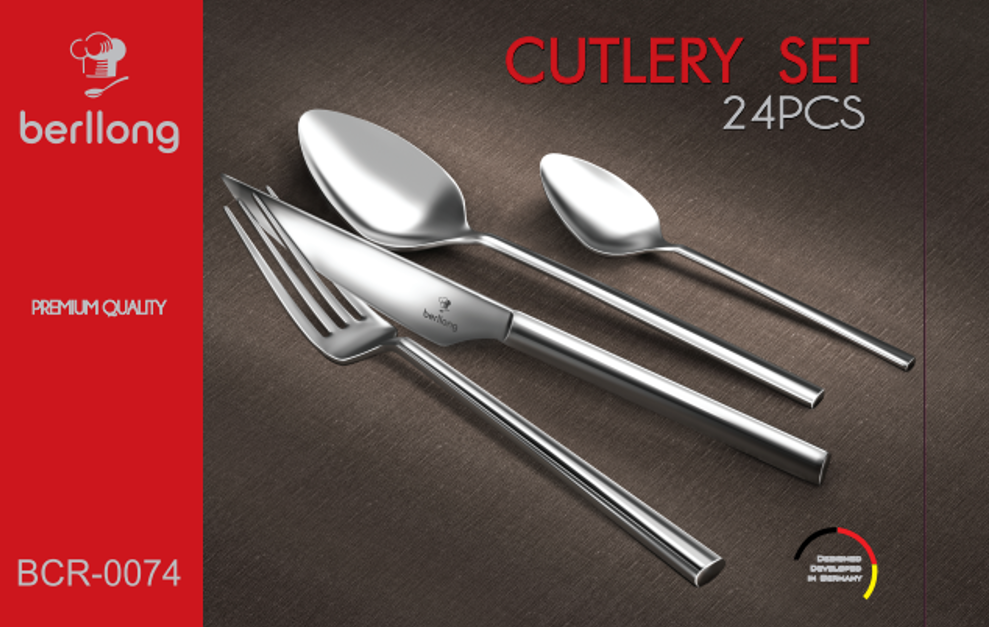 6 ც ჩანგალი, 6 ც დანა,6 ც სადილის კოვზი,6 ც ჩაის კოვზი