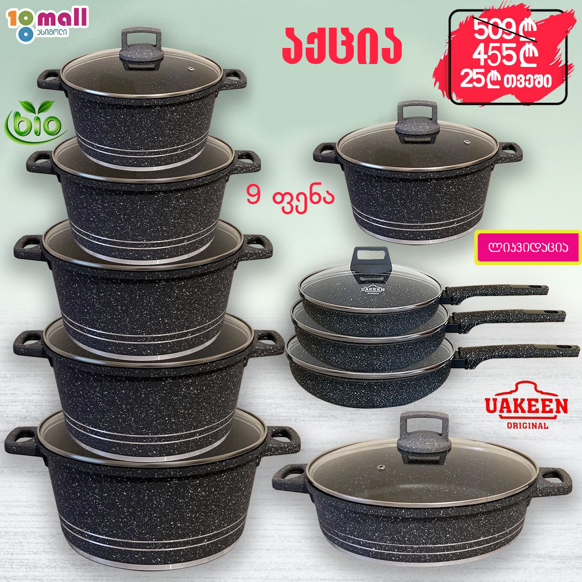 რაოდენობა: ქვაბების ნაკრები uaken 10in1 ნაცრისფერი